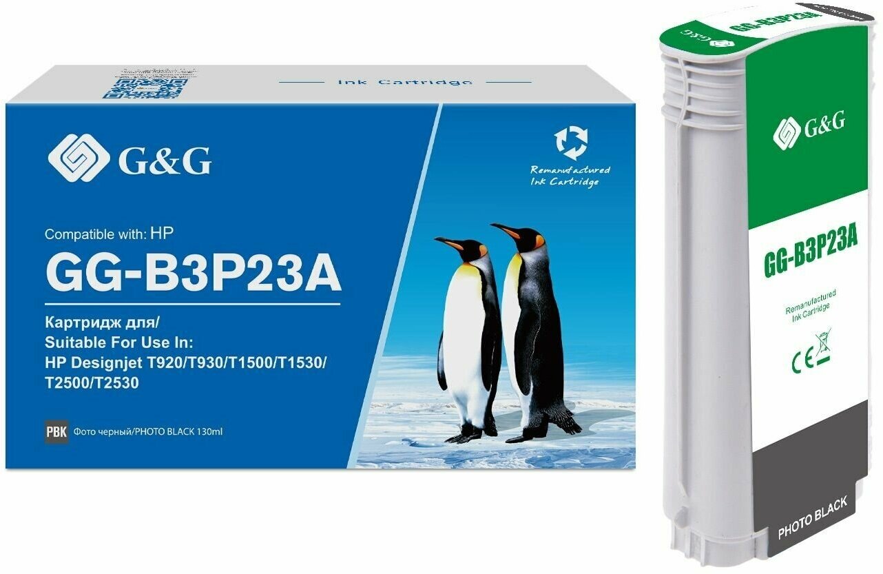 Картридж струйный G&G 727 Gg-b3p23a фото черный (130мл) для HP DJ T920/T1500 Gg-b3p23a .