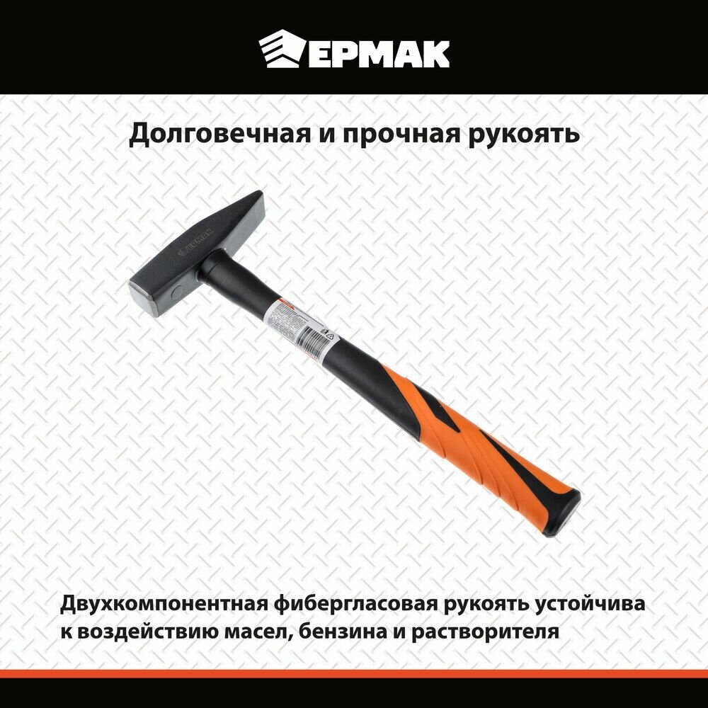 Молоток кованый Ермак с фиберглассовой двухкомпонентной ручкой 400г