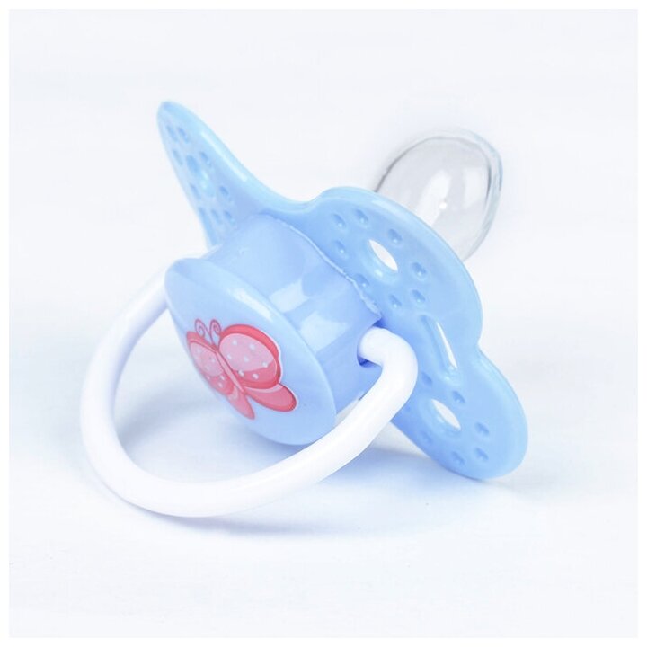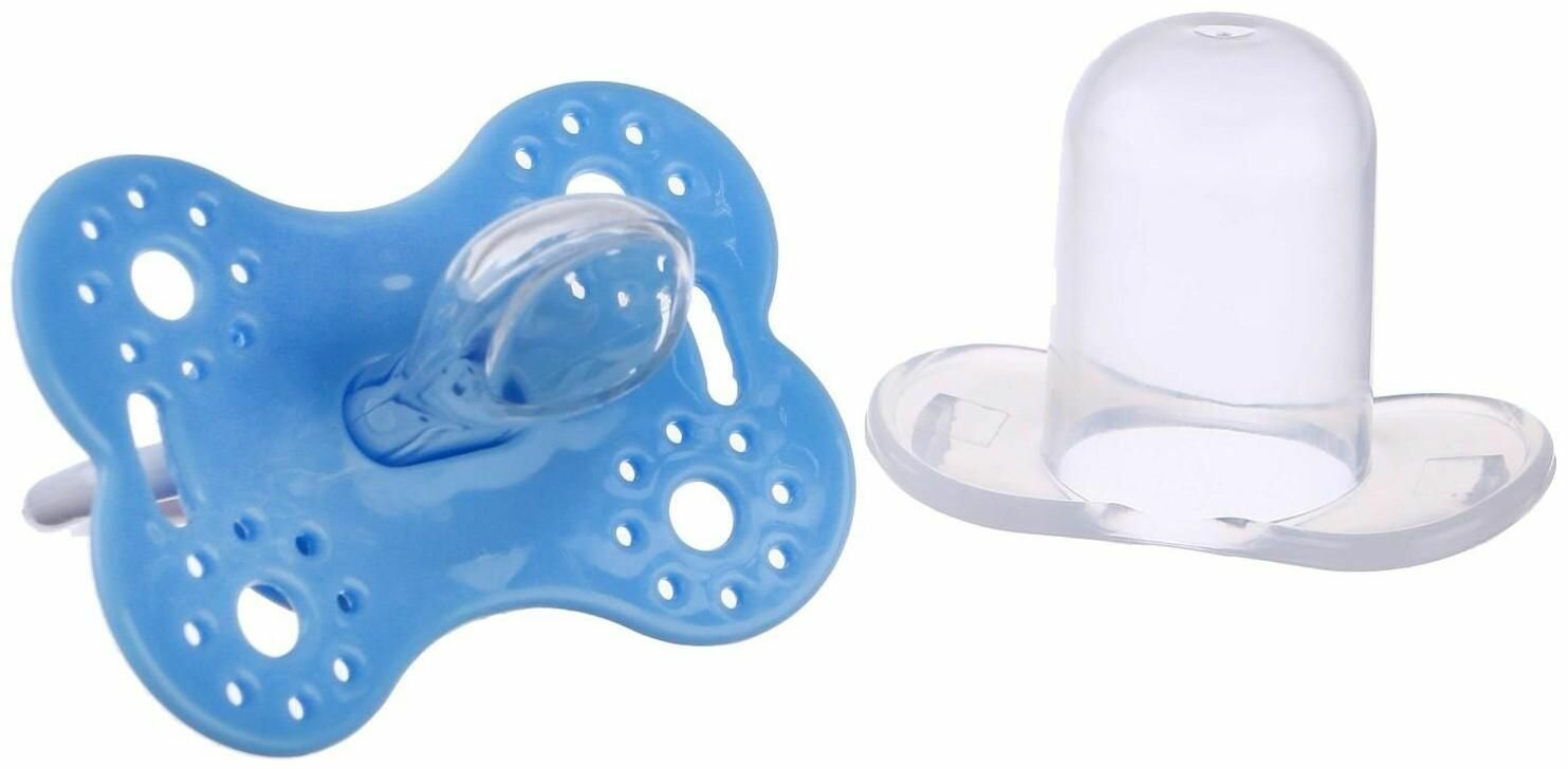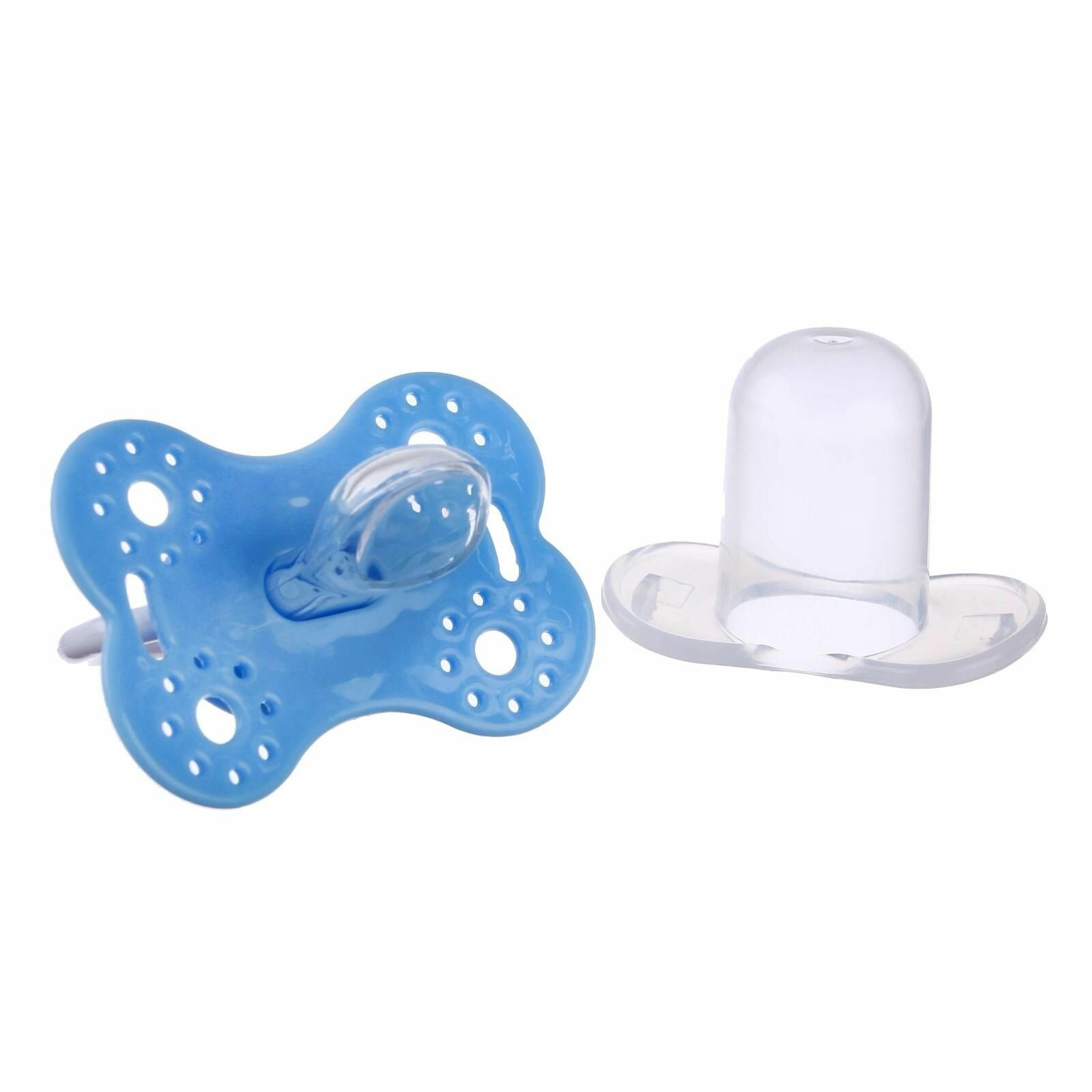 Купить Пустышка ортодонтическая "Бабочка" с колпачком, детская силиконовая соска, для новорожденных малышей от 0 месяцев, цвет голубой