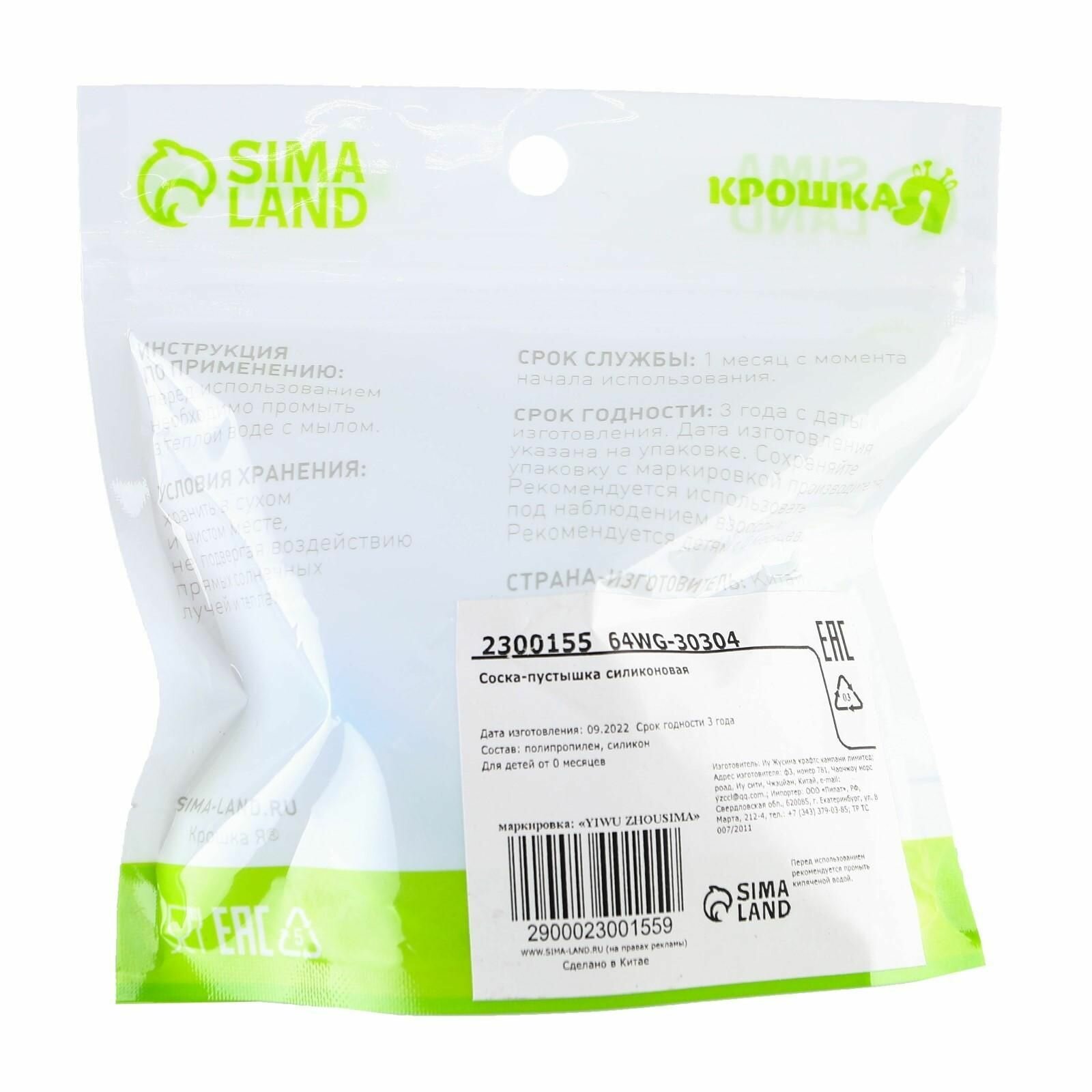 | Тип | силиконовая пустышка |
