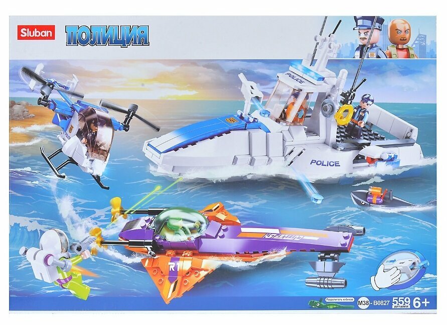 Купить Sluban Конструктор Полиция Преследование в море 559 деталей M38-B0827 с 6 лет