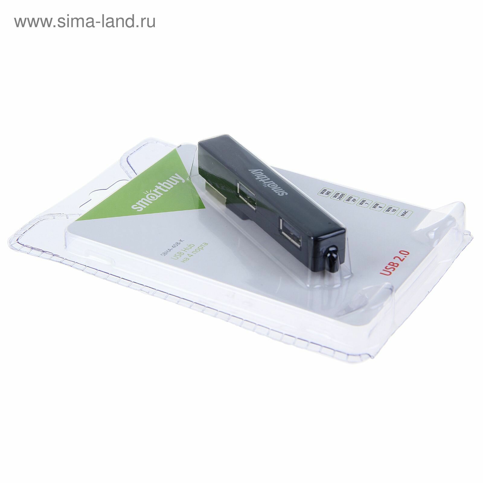 USB HUB, хаб на 4 порта Smartbuy USB 2.0 (SBHA-408-K) черный
