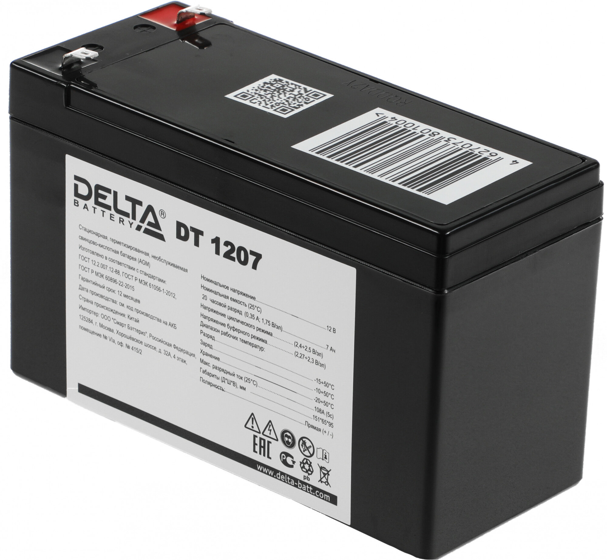Аксессуар Delta Battery DT 1207 voltage 12V, capacity 7Ah, 151х65х102mm