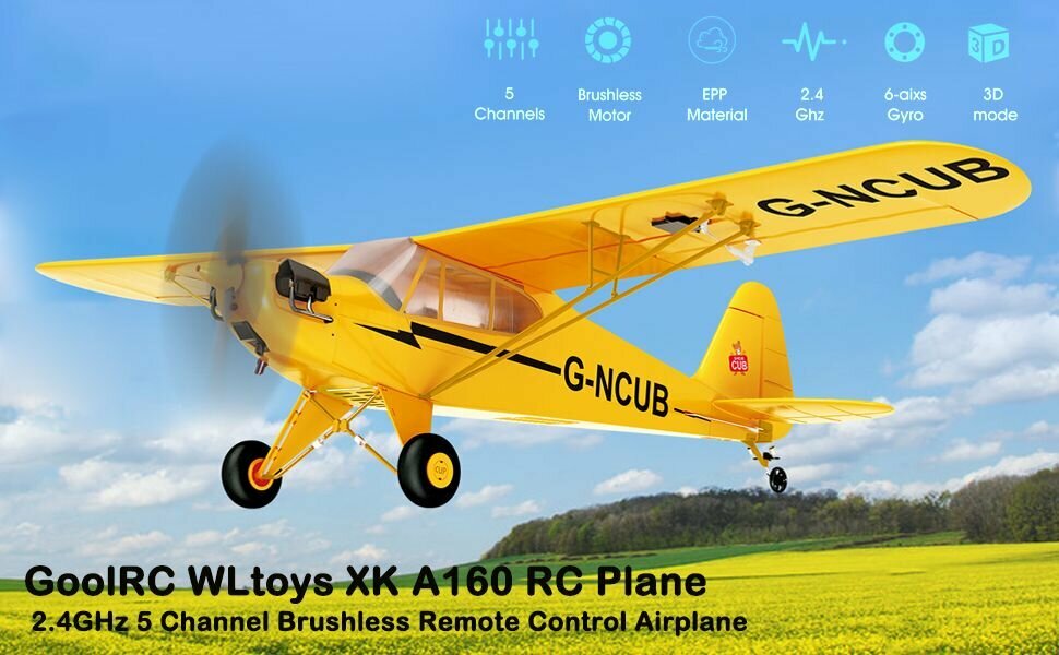 Радиоуправляемый самолет XK A160 J3 SKYLARK RC RTF 2.4G - XK-A160 / самолет на пульте управления интересное: