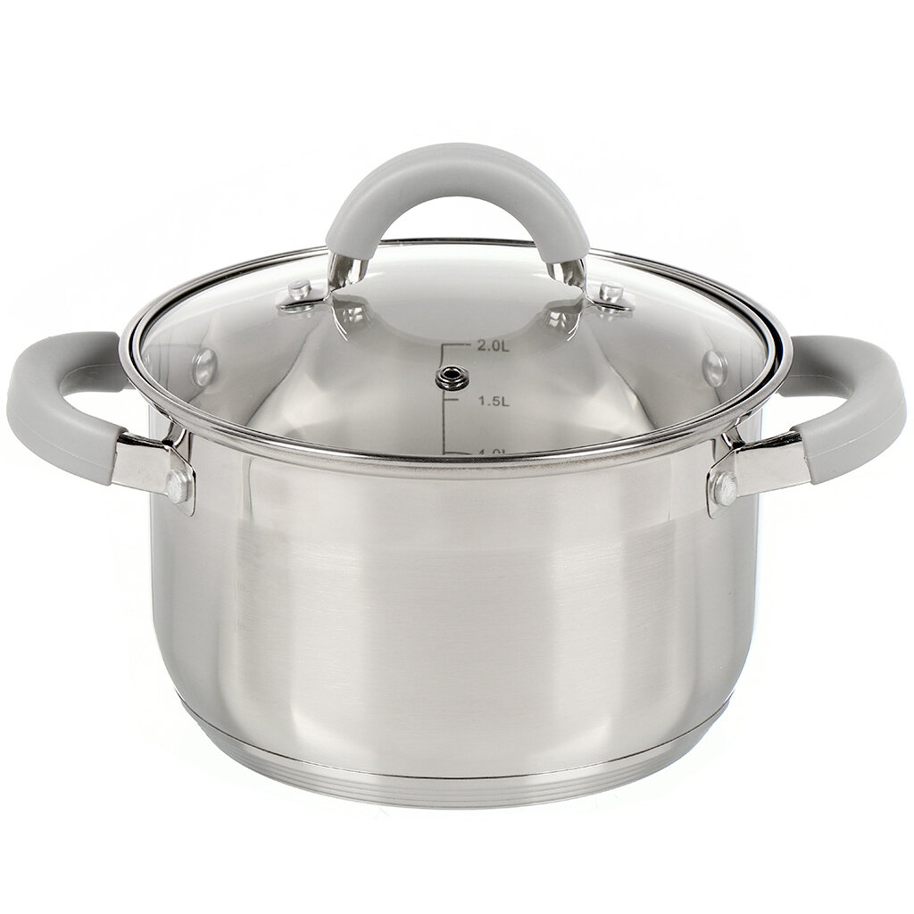 Кастрюля Felicita, объем 2 л, из нерж стали с крышкой из жаропрочного стекла, размер 16*10 см