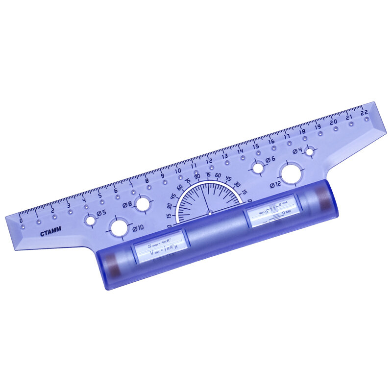 Линейка с роликом (рейсшина) 22 см, пластиковый ролик, с транспортиром, прозрачная, ЛР10