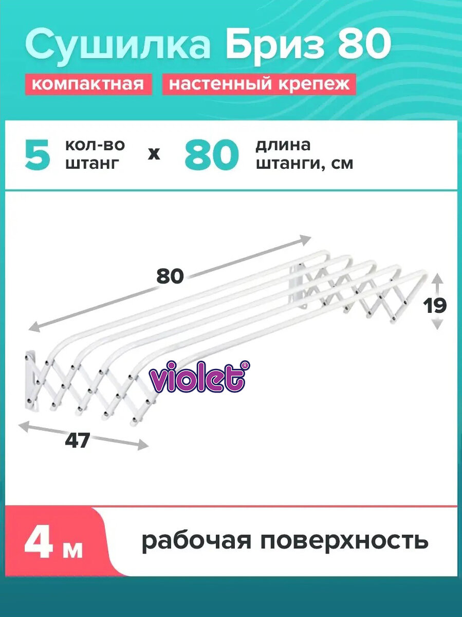 Violet Сушилка настенная раздвижная Бриз 4м 3204