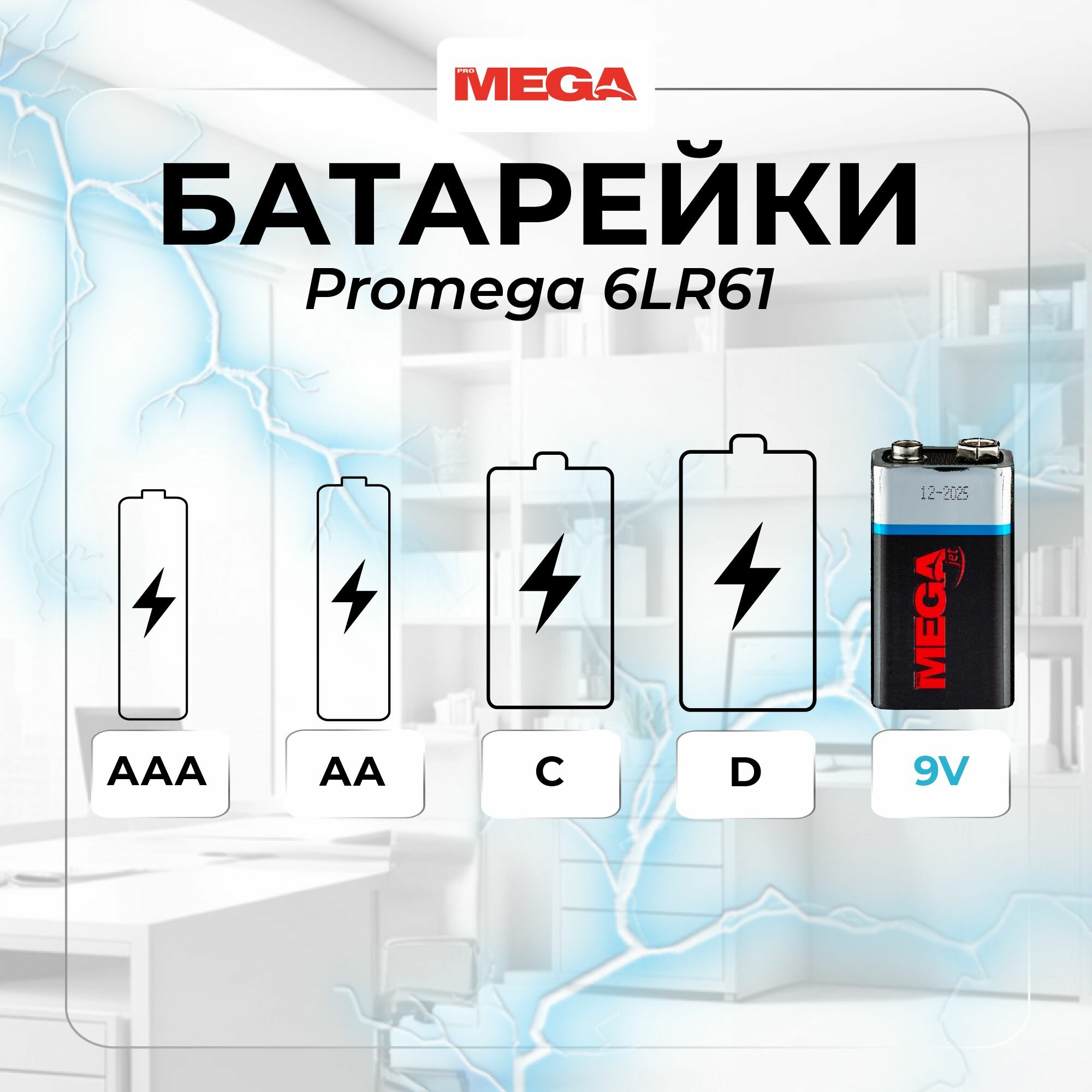 Батарейка ProMEGA 6LR61, Крона 9V, 1604A, алкалиновая, 1 шт