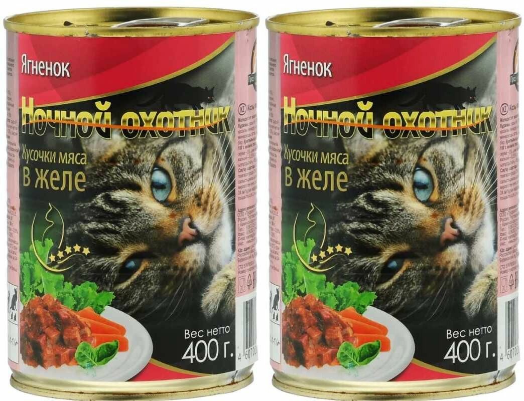 Ночной охотник Корм консервированный для кошек кусочки в желе Ягненок,415 г,2 шт