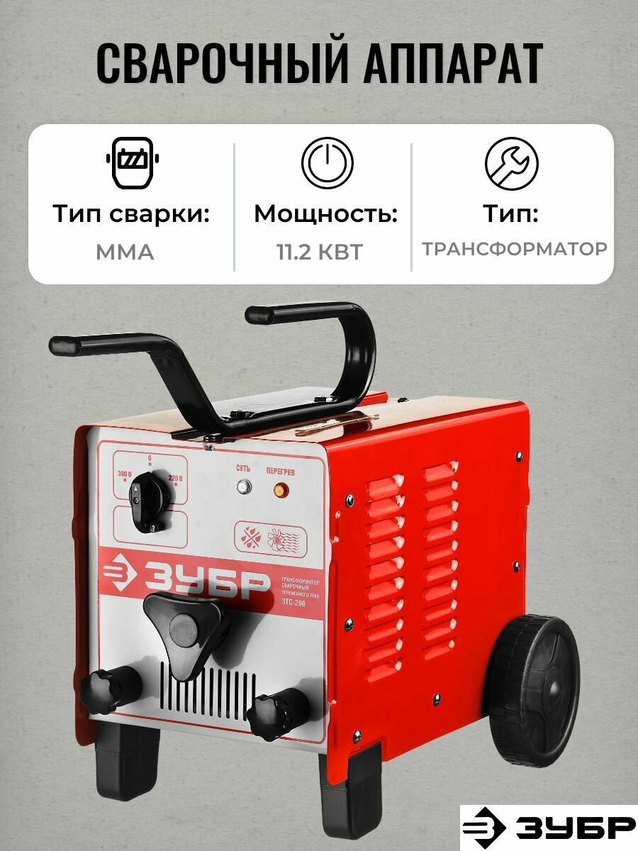 ЗУБР ММА, 200 А, сварочный аппарат трансформаторный, макс. электрод 4.0 мм (ЗТС-200)