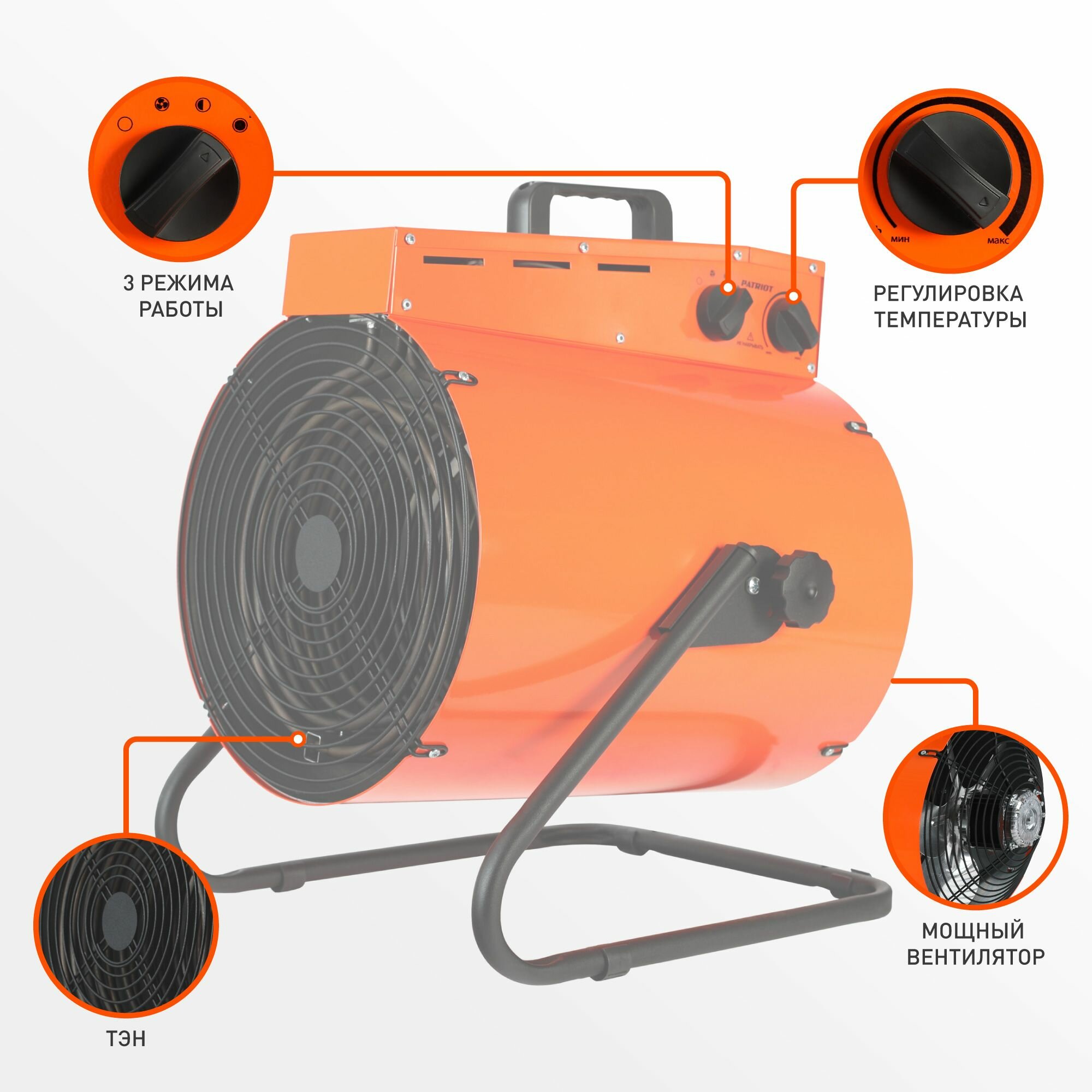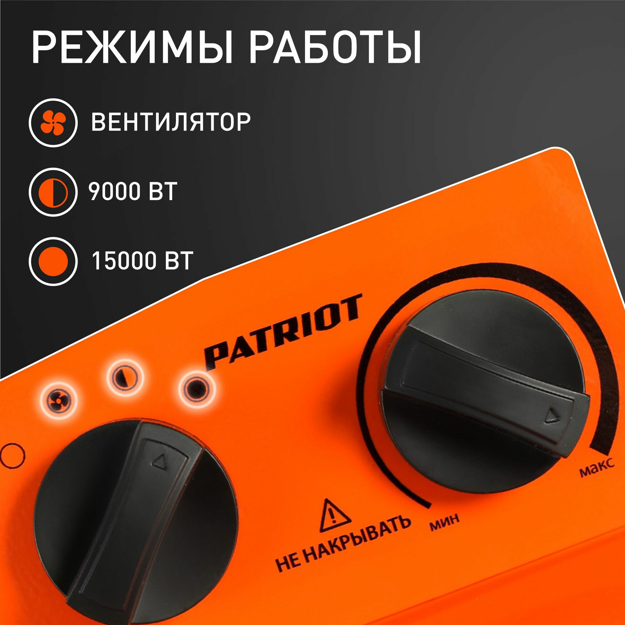 Купить Тепловентилятор электрический PATRIOT PT-R 15 [633307299] { 380В, терморегулятор, нерж.ТЭН, вил
