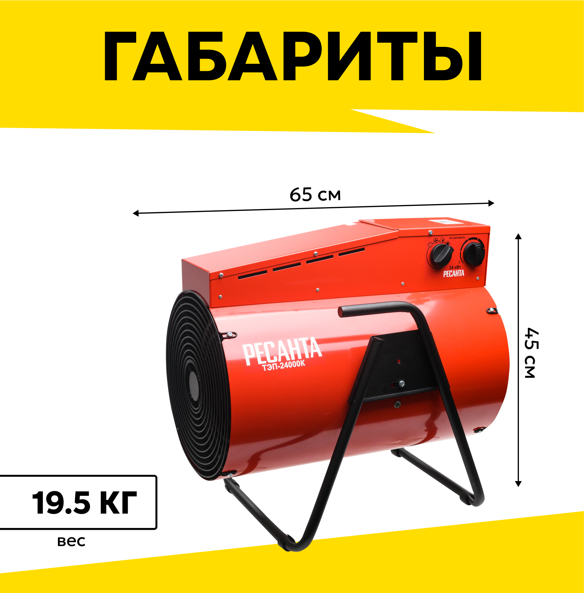Купить Электрическая пушка РЕСАНТА ТЭП-24000К, 24кВт, 380В, до 240м2, ТЭН