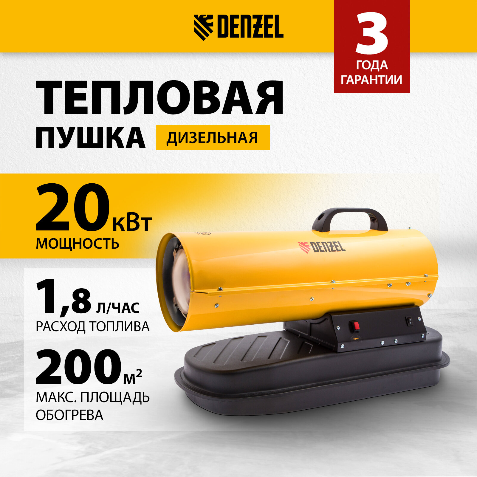 Ниже Вы можете прочитать отзывы на Дизельная тепловая пушка Denzel DHG-20 20 кВт, 500 м3/ч, прямой нагрев 96482, ознакомится с подробными характеристиками, посмотреть интересные обзоры и фотографии на Дизельная тепловая пушка Denzel DHG-20 20 кВт, 500 м3/ч, прямой нагрев 96482.