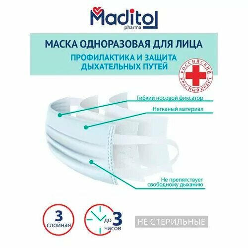 Маска защитная Maditol Маска одноразовая, 50 шт., голубой