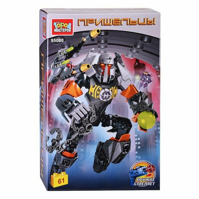 Купить Конструктор для мальчика пришельцы 61 деталь + оружие стреляет Город Мастеров