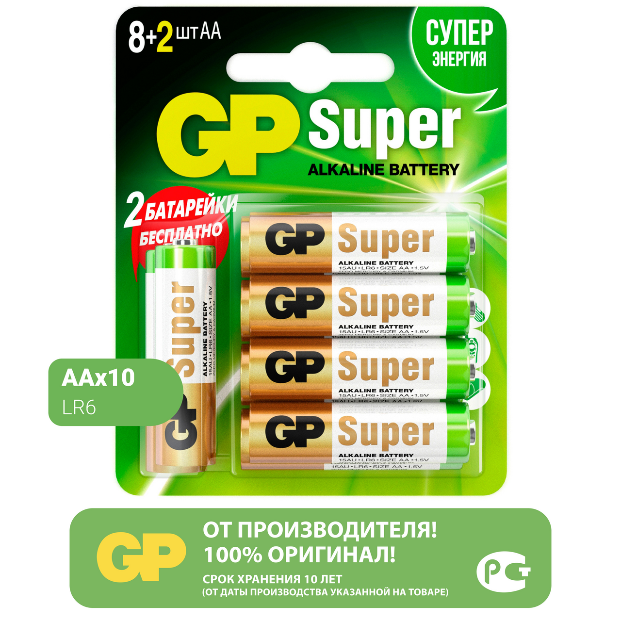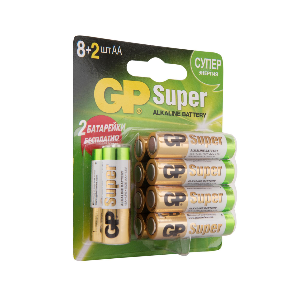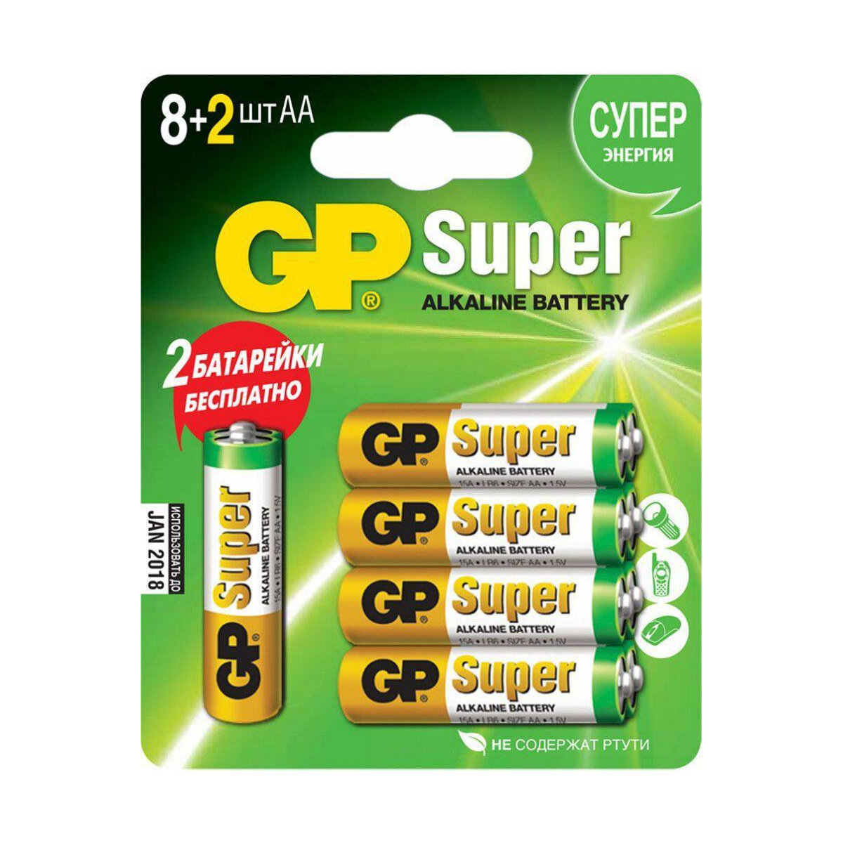 Батарейка алкалиновая GP Super, AA, LR6-10BL, 1.5В, 8+2 шт.