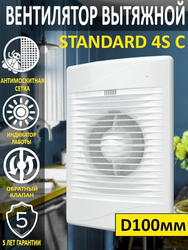 Вентилятор вытяжной Standard 4S C с обратным клапаном и антимоскитной сеткой 100 мм интересное: