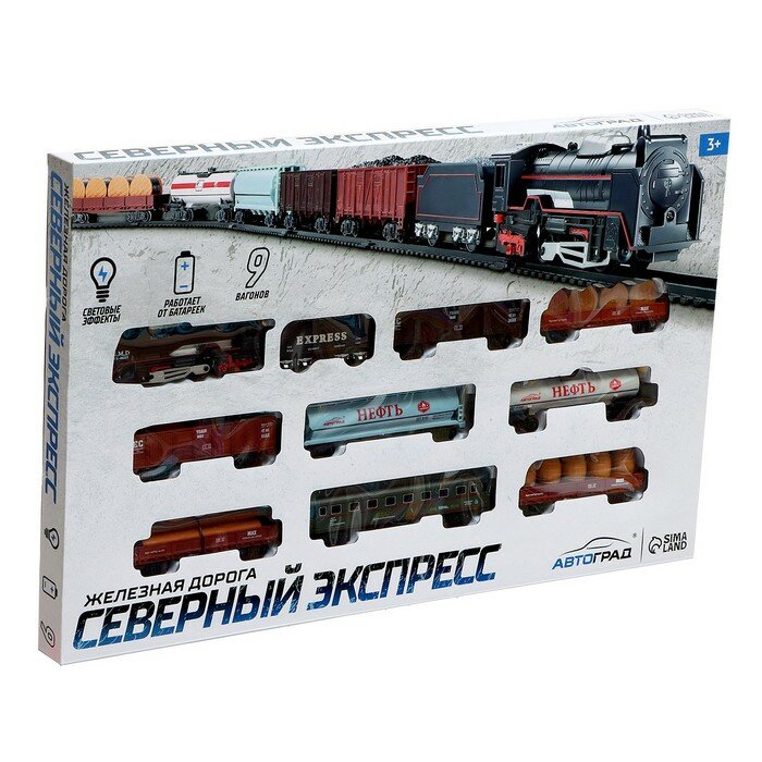 --- Железная дорога "Товарный поезд", с 9 вагонами, работает от батареек, свет