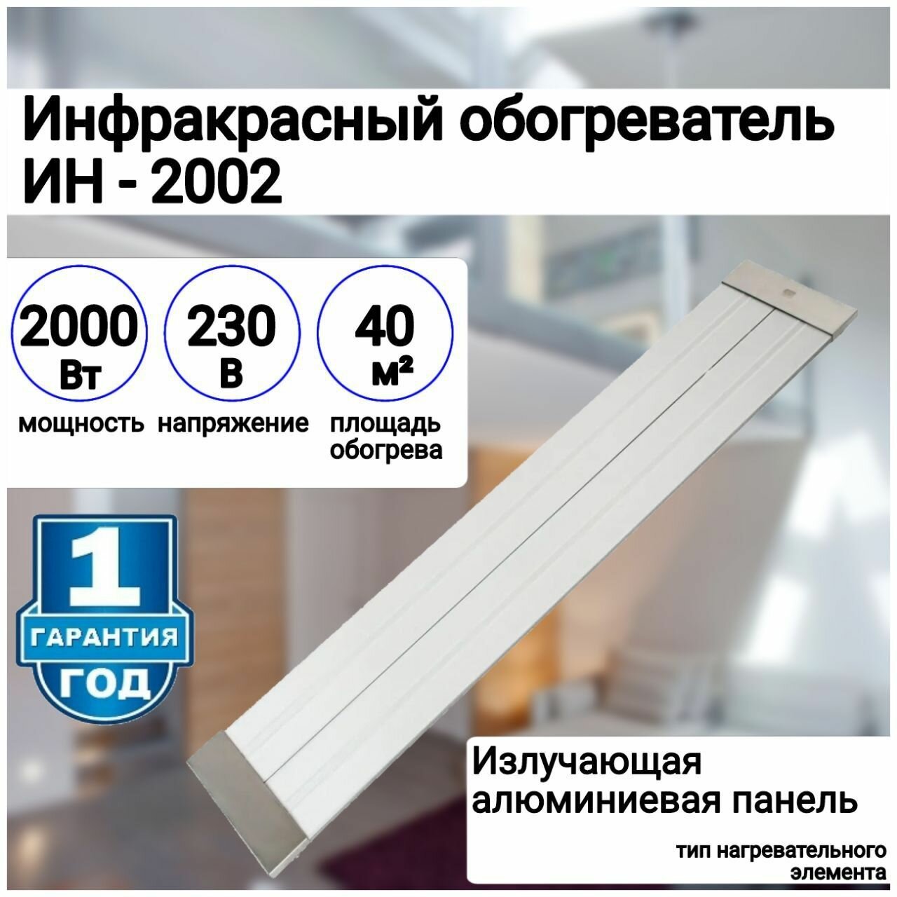 Инфракрасный обогреватель ИН- 2002, 230В, 2000 Вт СИБРТЕХ 96458