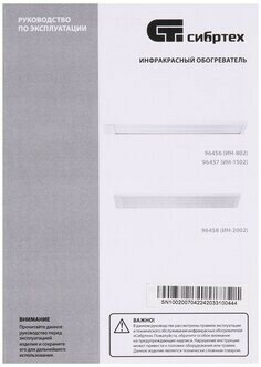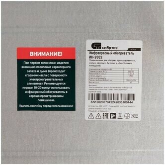 Сибртех Инфракрасный обогреватель ИН- 2002, 230В, 2000 Вт 96458 .