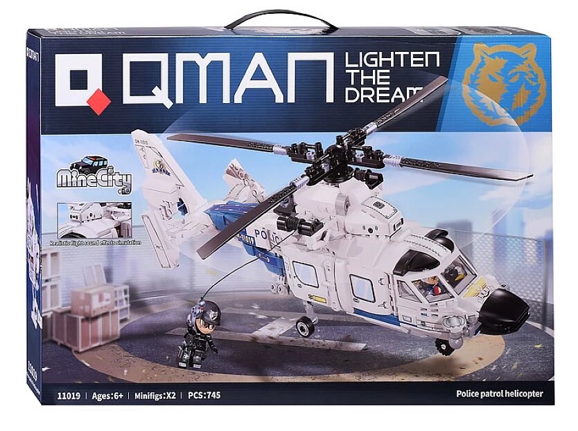 Купить Конструктор Qman "Вертолет Спасатель" 745 деталей, для детей с 6 лет, в коробке (11019)