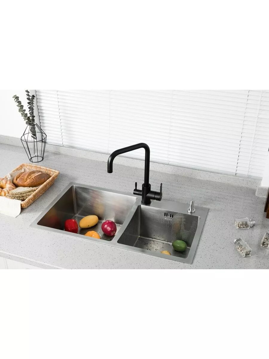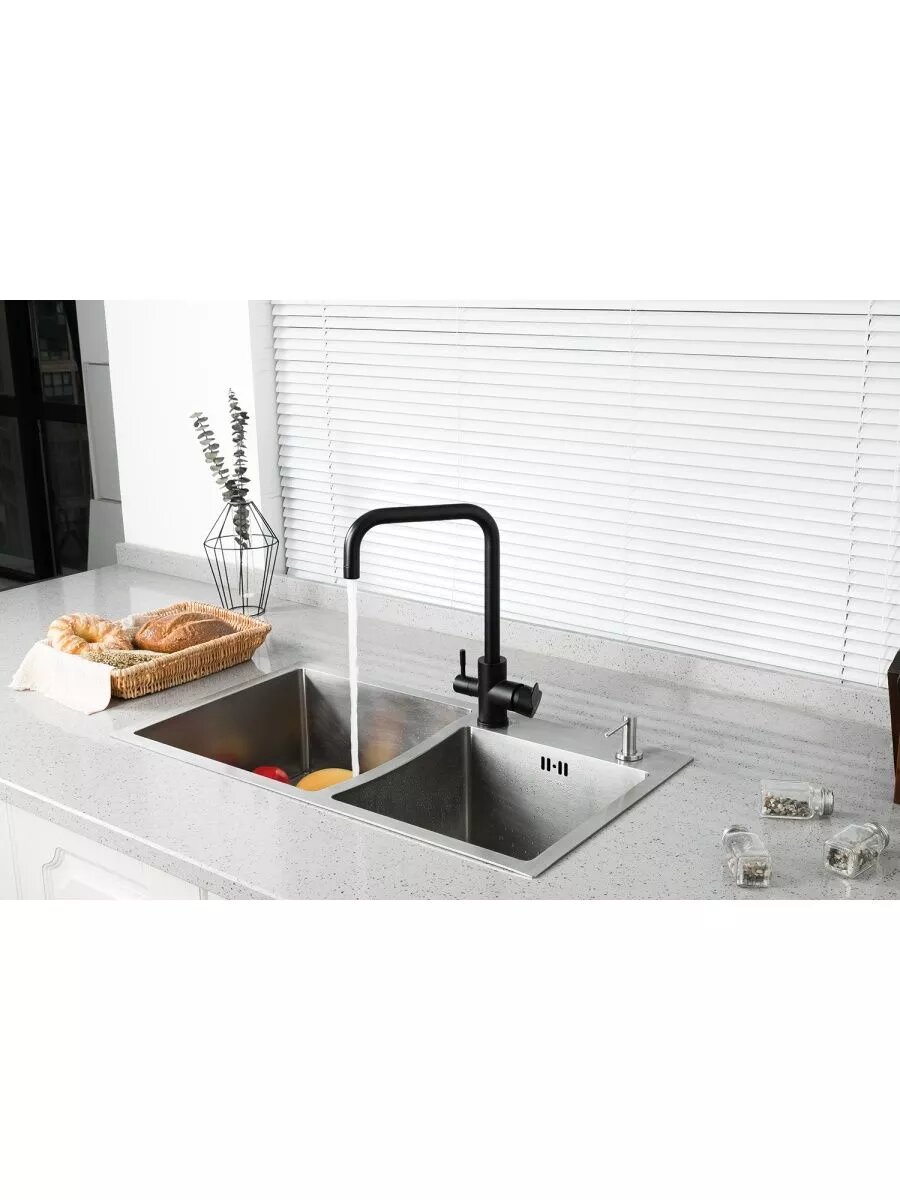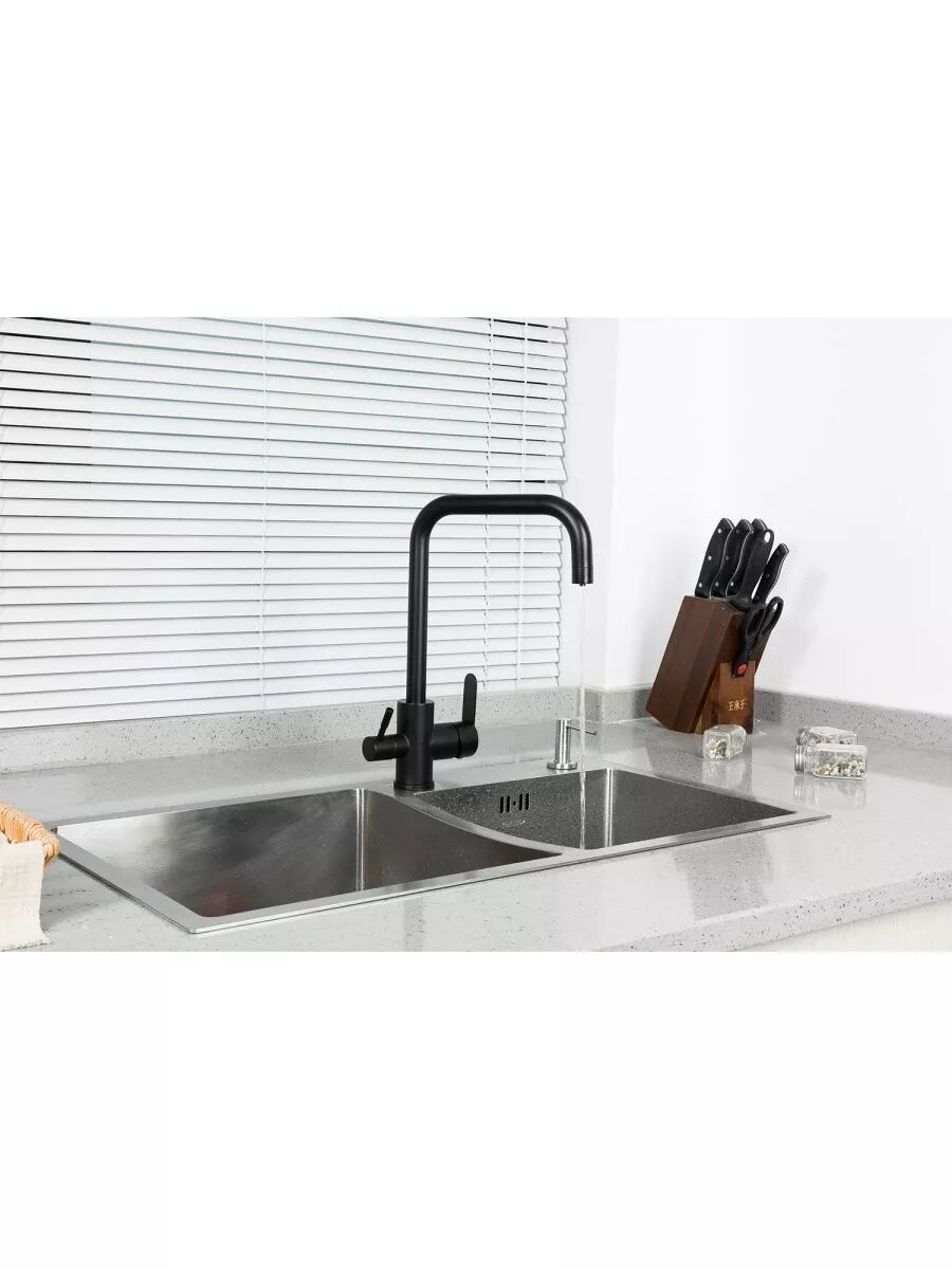 Смеситель для кухни со встроенным фильтром (краном) под питьевую воду Frap H802-6 F43801-6 с аэратором черный