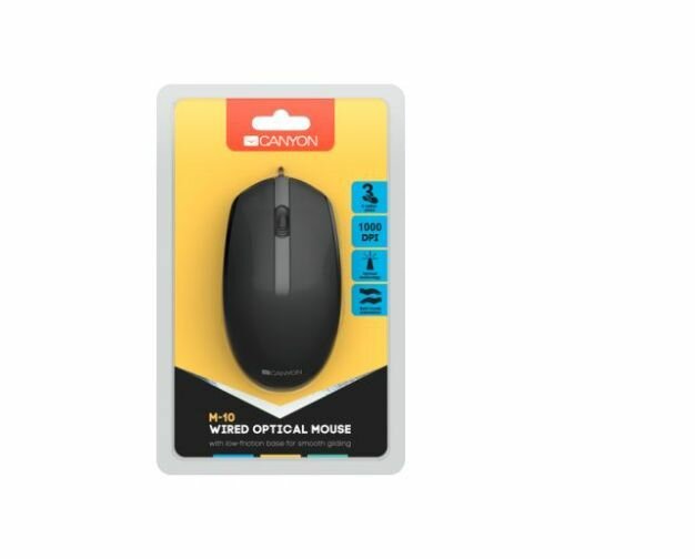 Проводная мышь Canyon CM-1, 1000DPI, 3 кнопки, черный
