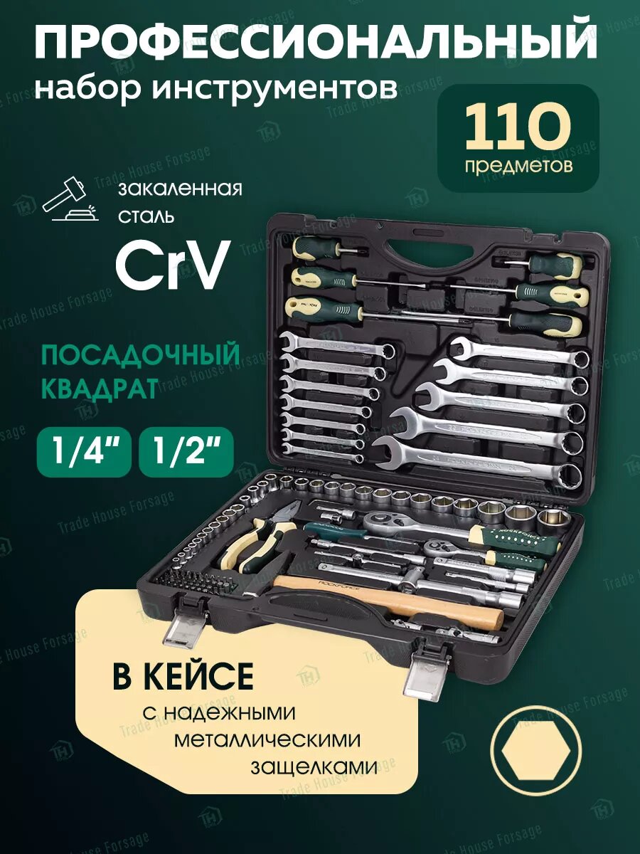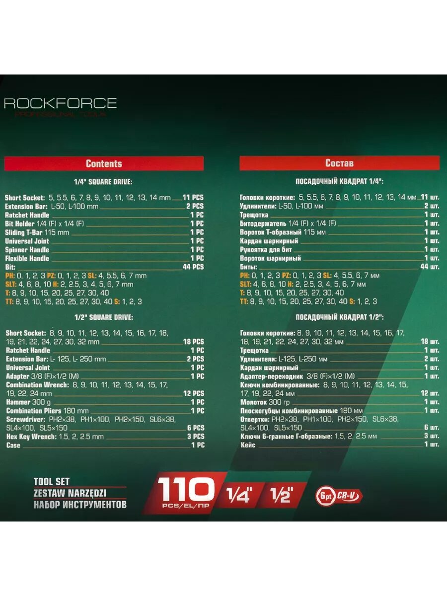 Купить Rockforce Набор инструментов 110 предметов 1/4'', 1/2'' (6-гран)(5-32мм) RF-41101-5(57365)
