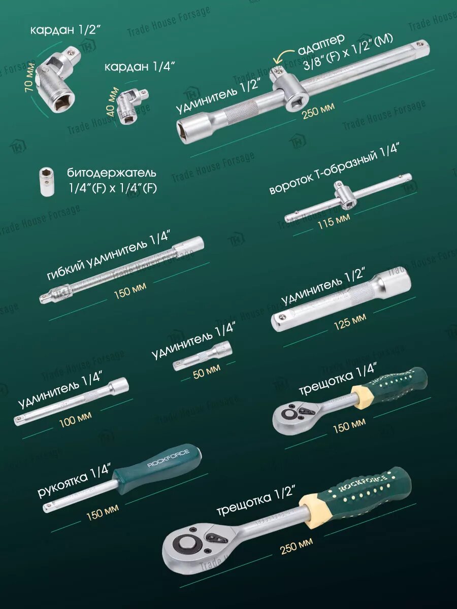 Набор инструментов ROCKFORCE 1/4, 1/2 108 предметов