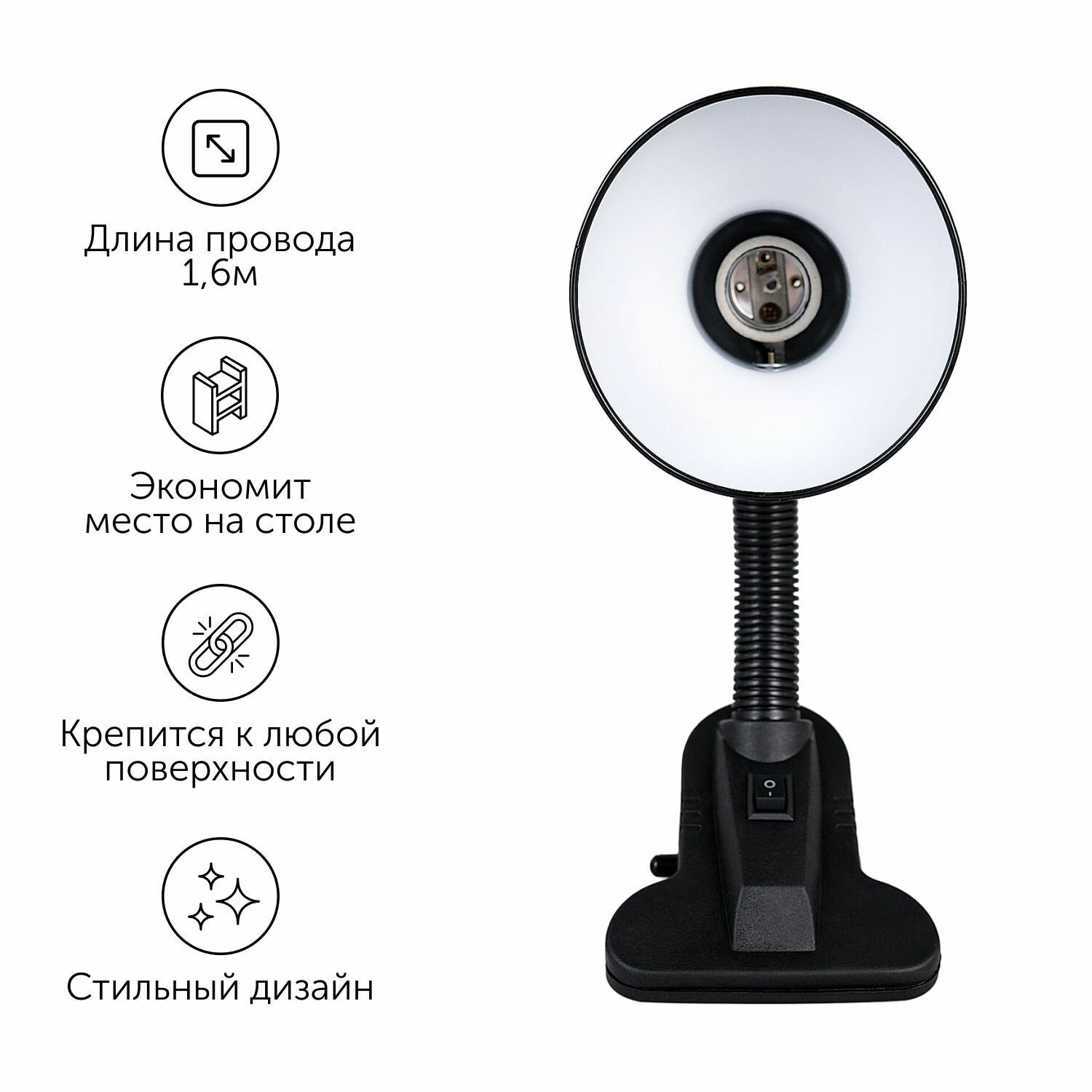 Купить Лампа настольная школьника на прищепке, светильник для чтения Е27 проводной от сети 220 В, черная