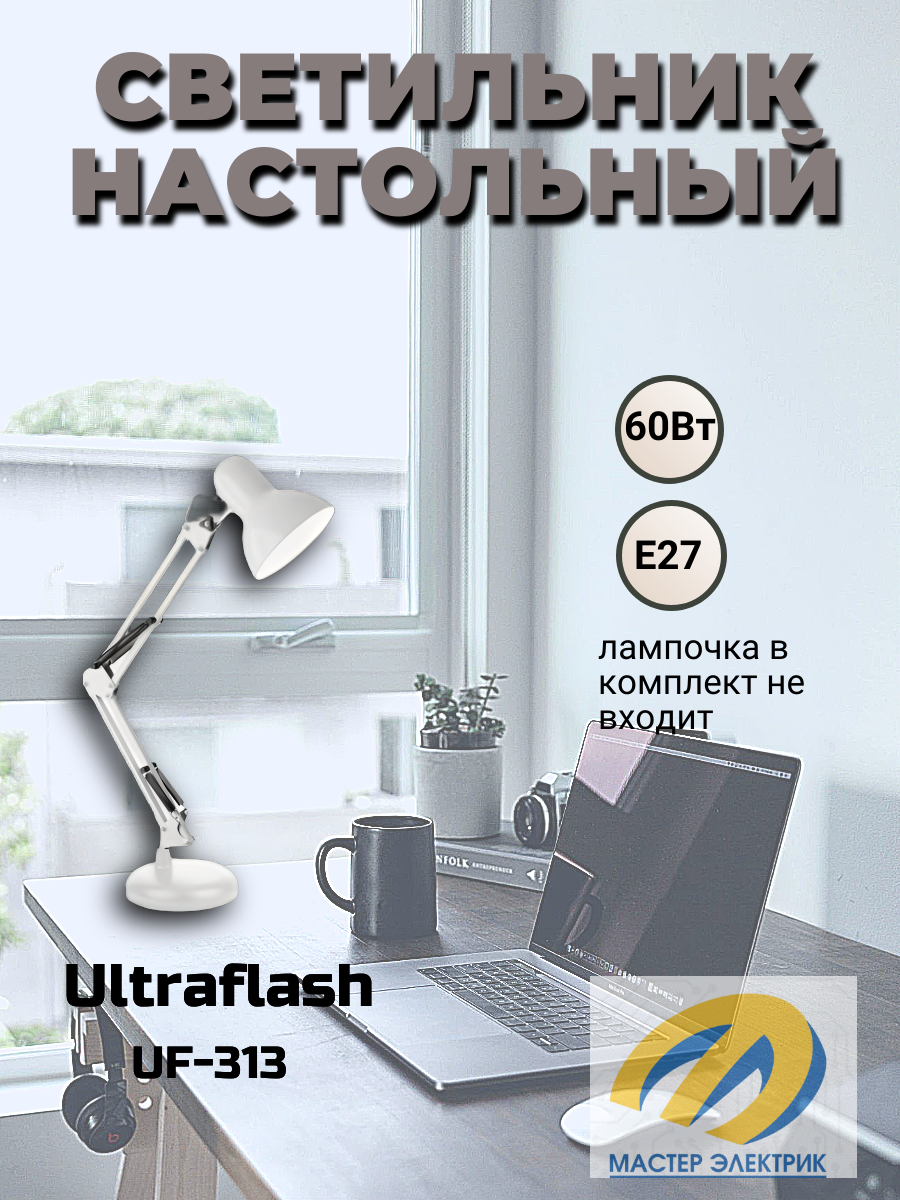 Лампа настольная Ultraflash UF-313, E27, 60 Вт, белый