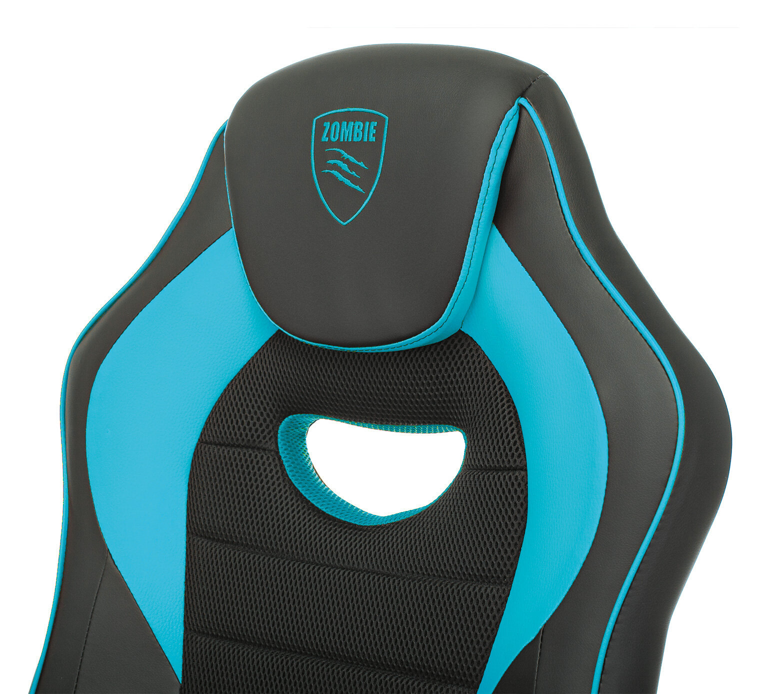 Игровое кресло Бюрократ ZOMBIE GAME 16 Черный, экокожа, ткань / Голубой, экокожа
