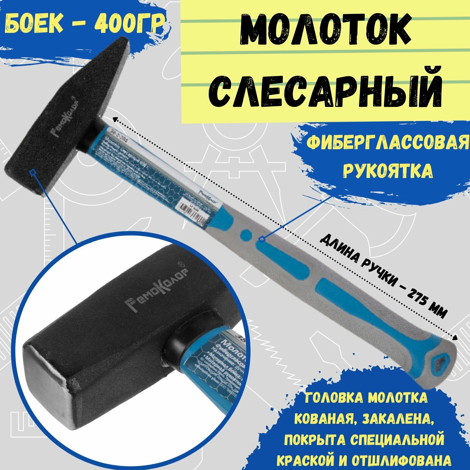 Молоток 400гр стекловолокно РемоКолор арт 38-2-204