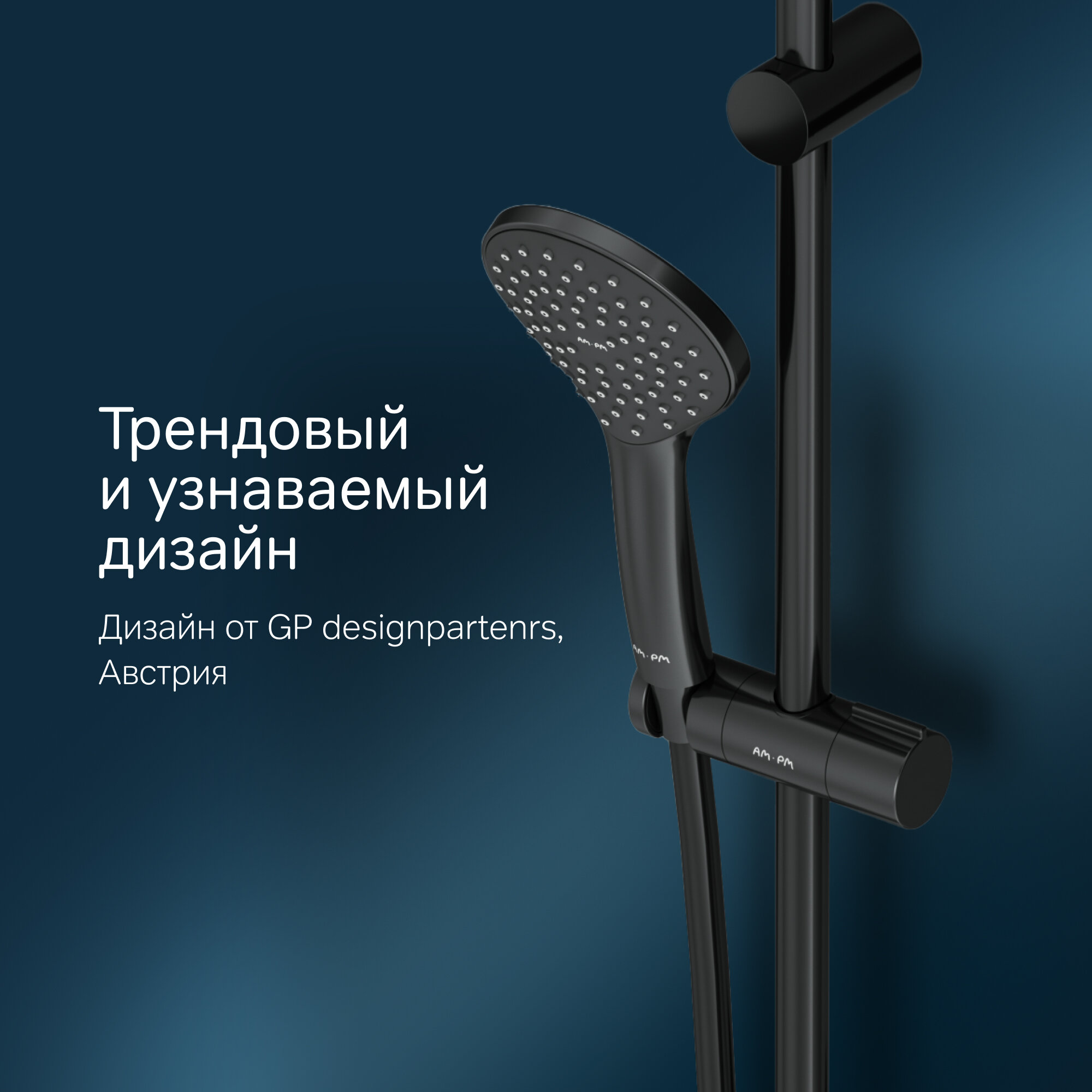 Душевой гарнитур AM.PM Like F0180022 держатель, шланг, лейка 3 режима, черный интересное:
