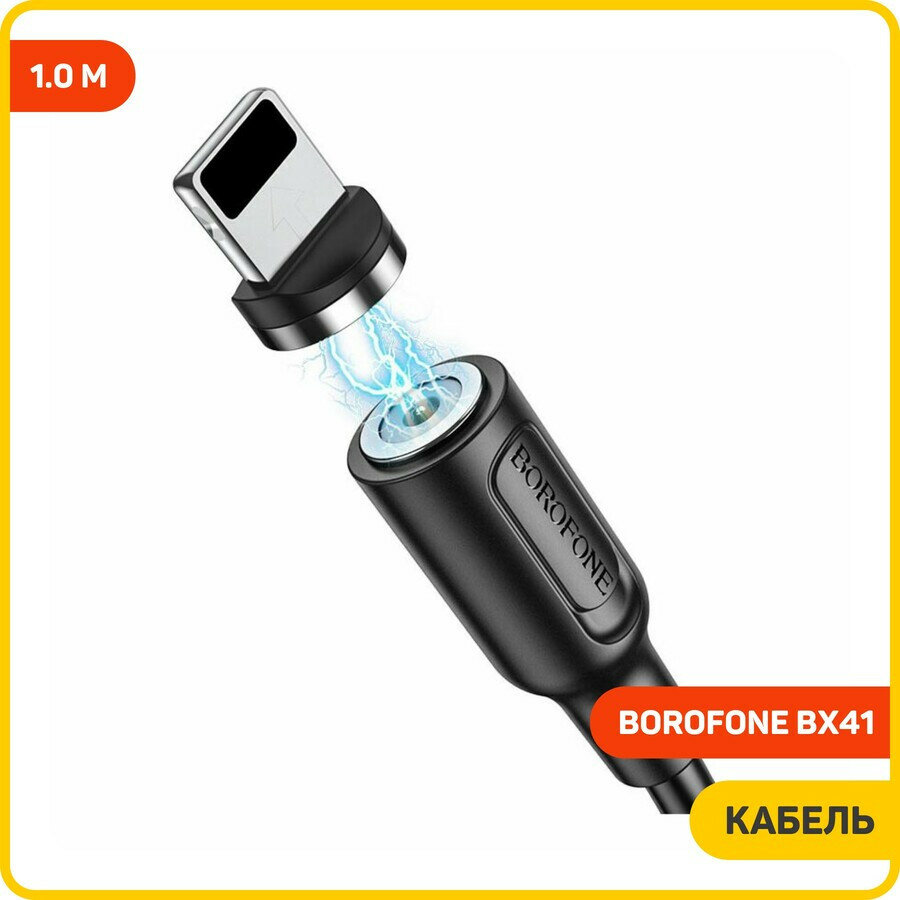 Магнитный кабель Borofone BX 41, USB-Lightning, длина 1 метр, 2,4A, чёрный