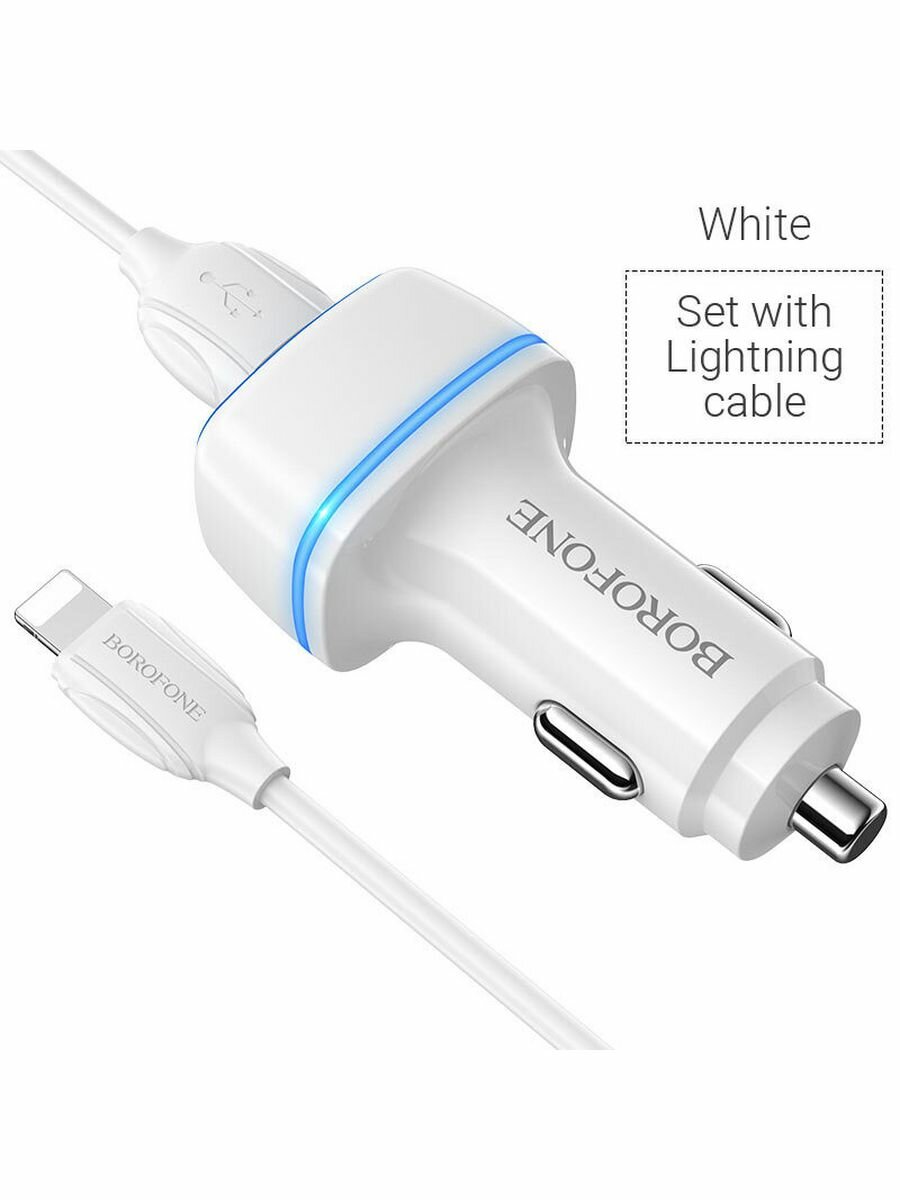 Автомобильное зарядное устройство Borofone BZ12B Lasting power + кабель Lightning, 18 Вт, white