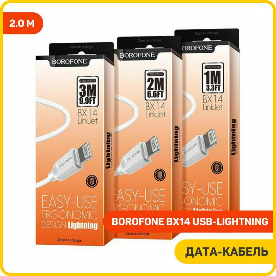 Кабель Borofone USB - Lightning LinkJet (BX14), 2 м, 1 шт., белый