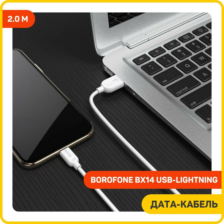 Дата-кабель Borofone BX14 USB-Lightning, 2 м, белый