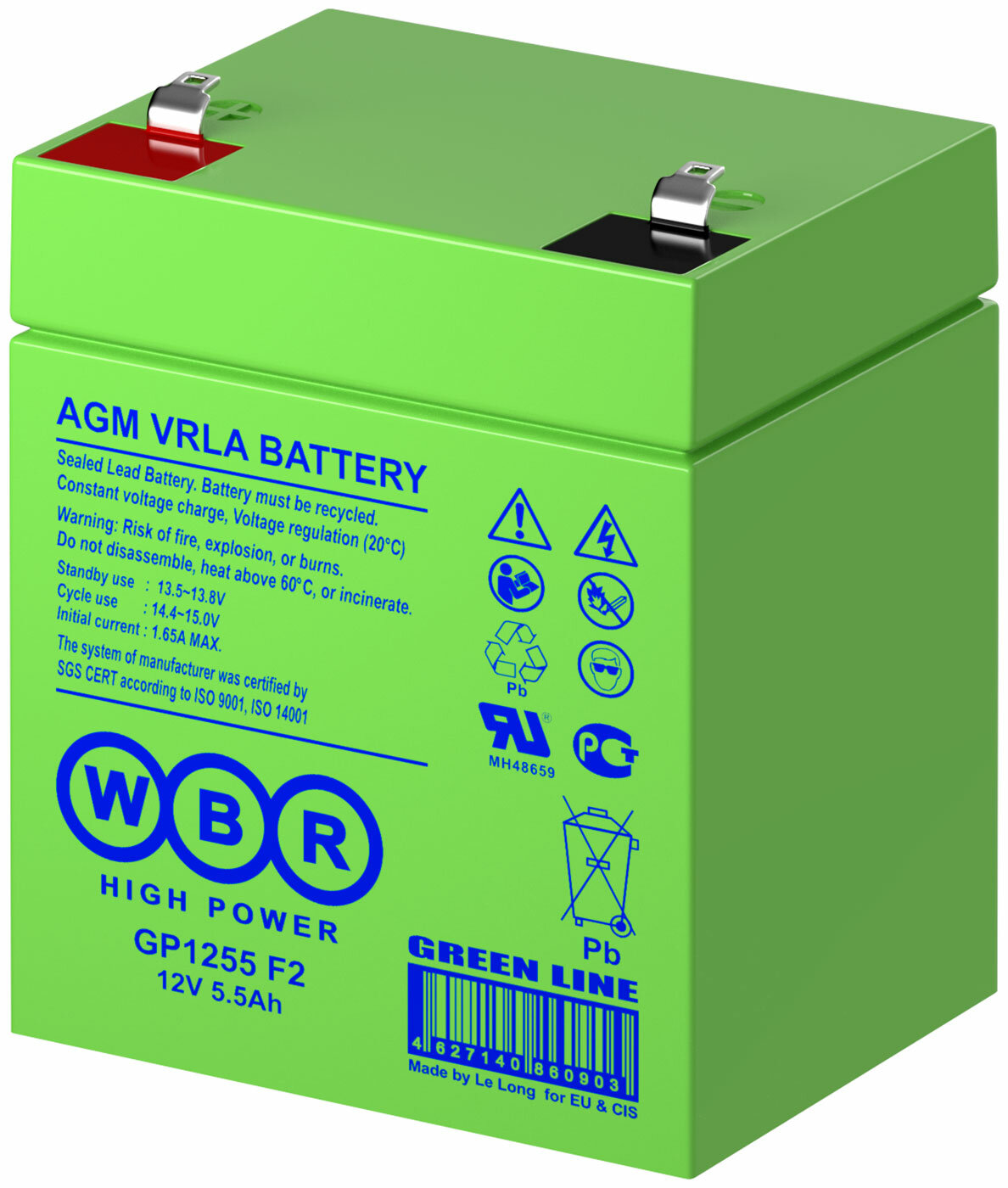 Аккумулятор WBR GP-1255 (12В, 5.5Ач / 12V, 5.5Ah / вывод F2)