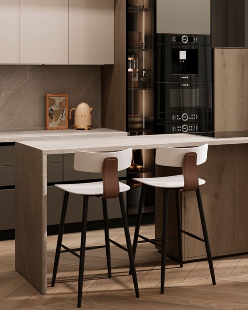 Стул полубарный ANT пластиковый белый вставки экокожа