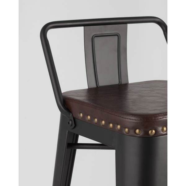 Стул полубарный Tolix SOFT STOOL GROUP коричневый; экокожа, металл; мягкое сиденье; без подлокотников