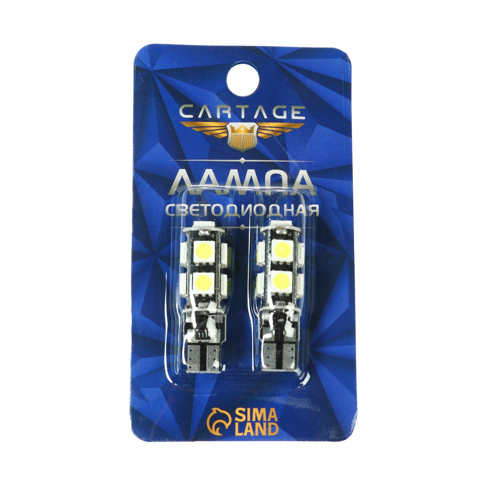Автолампа светодиодная Cartage, T10 W5W, 12 В, 9 SMD-5050, 2 шт, свет белый