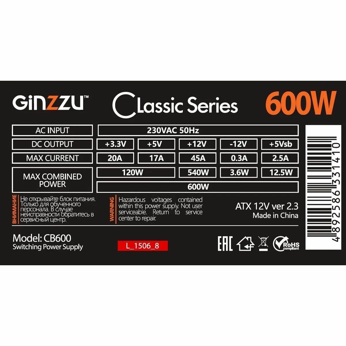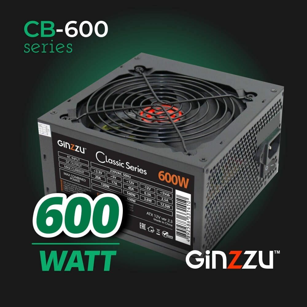Блок питания 600Вт ATX Ginzzu CB600 600W, 120 мм