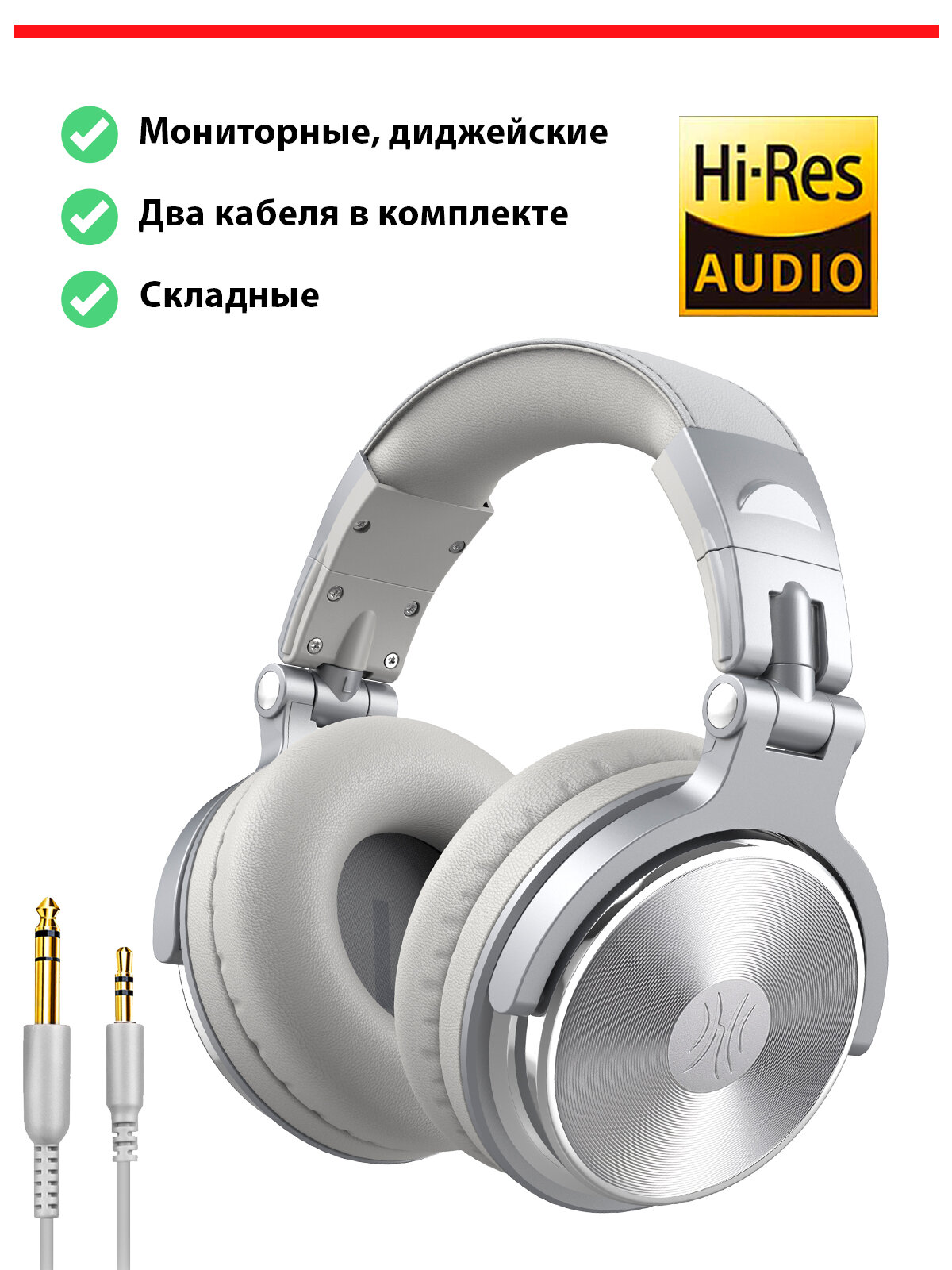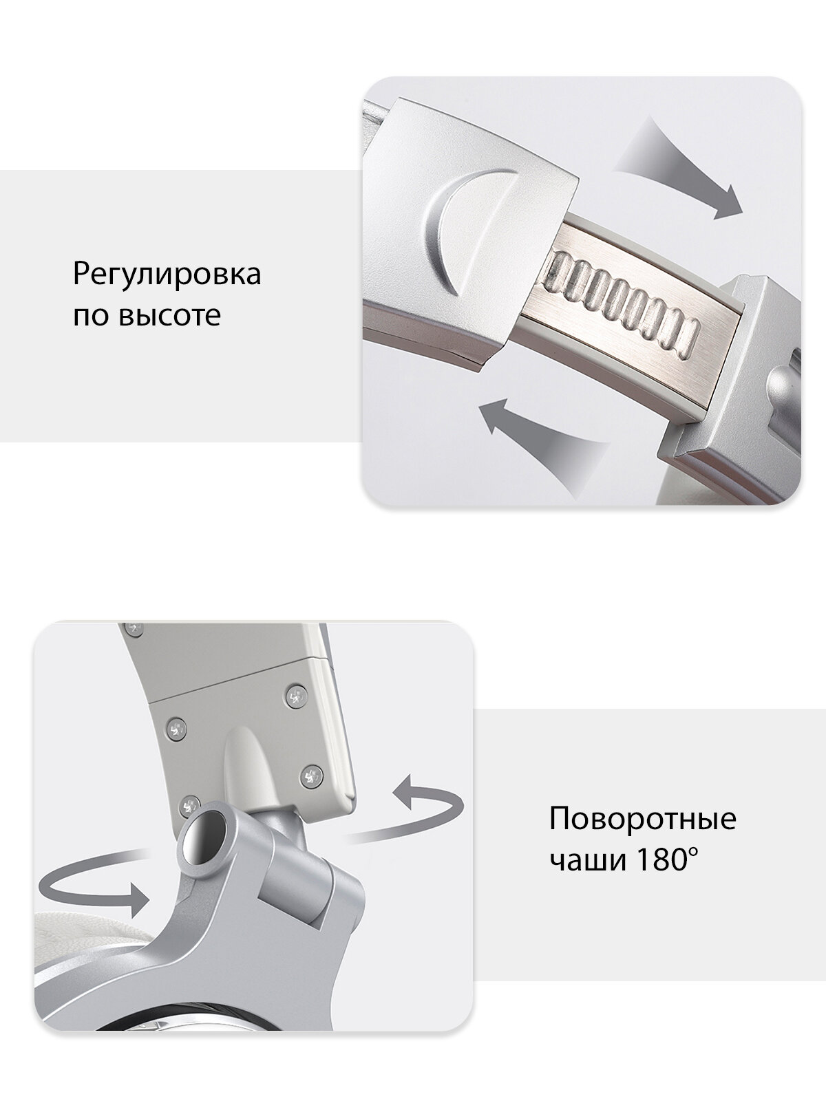 Купить Наушники проводные Oneodio Studio Pro 10 silver полноразмерные 3.5/6.3 - 1.2/3м два съёмных кабеля серебристые