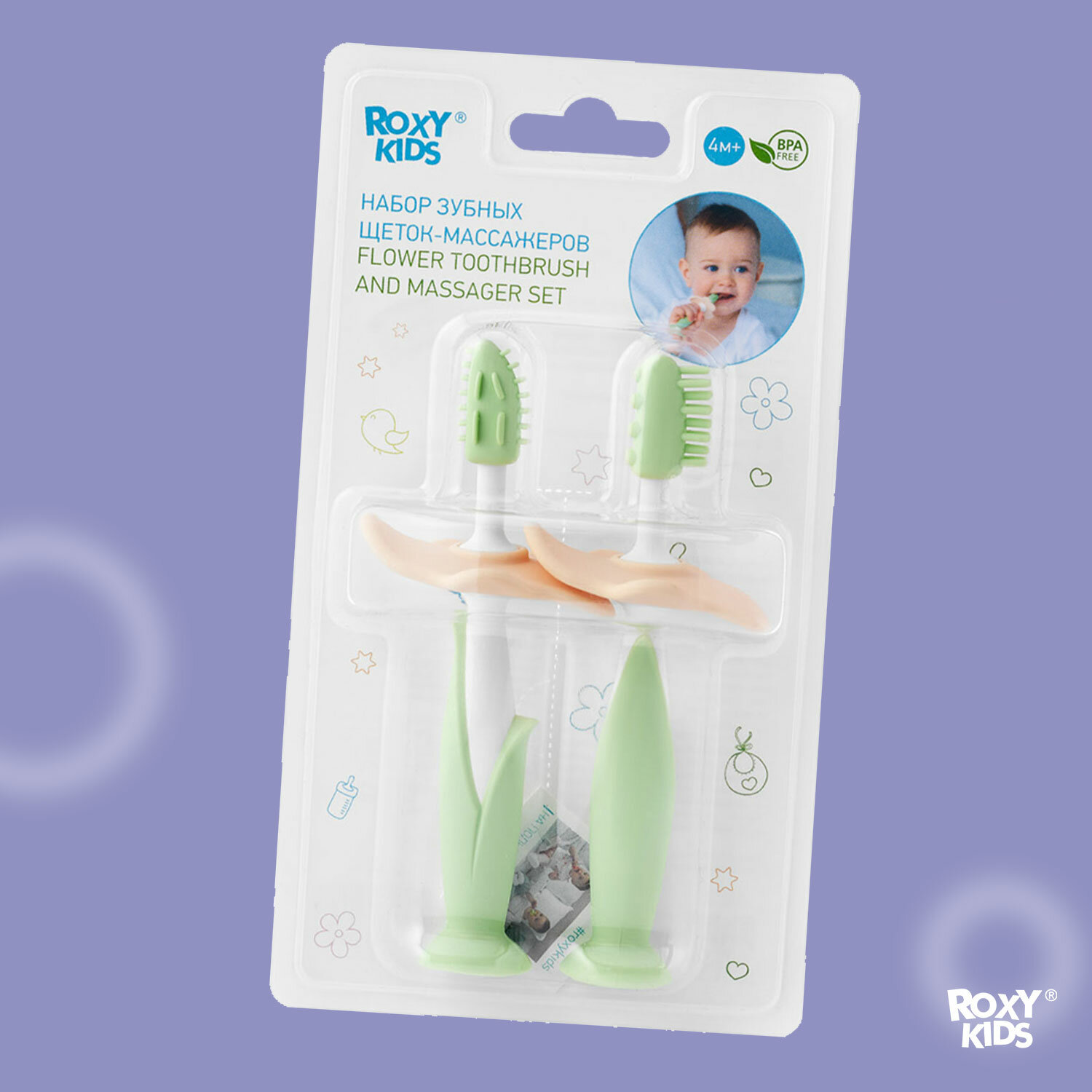 Рокси-кидс Набор зубных-щеток массажеров Flower 4+ №2