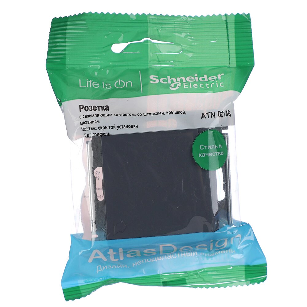 Механизм Atlas Design ATN000746 розетки "евро" со шторками с крышкой IP20 с/п грифель Schneider Elecric