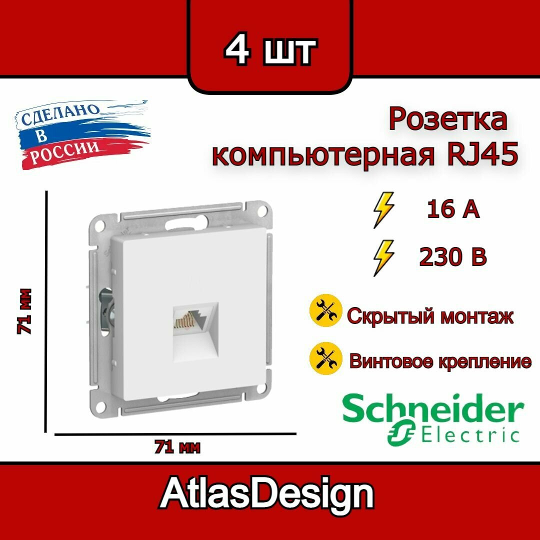 Розетка компьютерная RJ45, 6А, белая, Schneider Electric AtlasDesign (комплект 4шт)