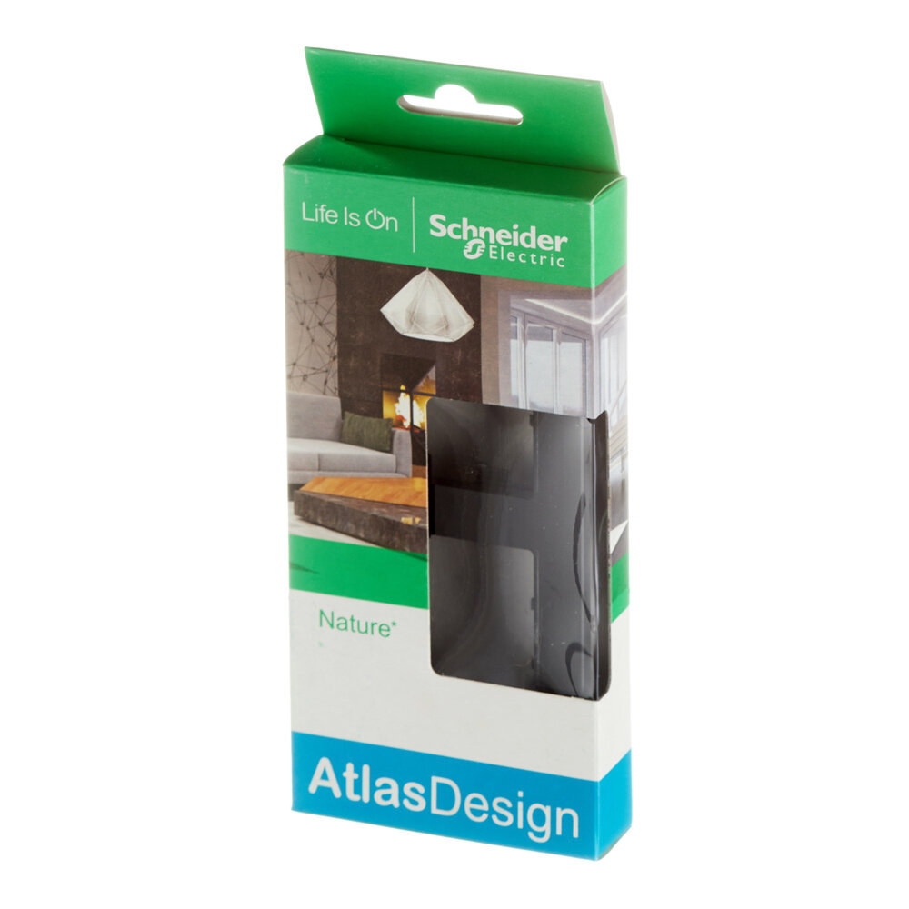 Рамка 1-м ATLAS DESIGN NATURE металл оникс Черная Рамка для розетки выключателя Schneider Electric SchE ATN312301, 1шт.
