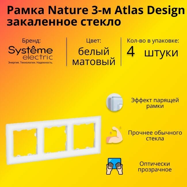 Купить Рамка Systeme Electric Atlas Design Nature тройная для розеток и выключателей белый матовый - 4 шт.