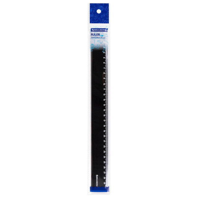 Линейка 30см Brauberg, непрозрачная, черная (210612)